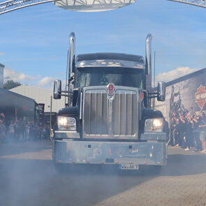 Kevin Kießling kauft Kenworth: SKS Bikeshuttle verstärkt seinen Fuhrpark mit dem original Kenworth W 990 aus dem Film „The Ice Road“ mit dem Hauptdarsteller Liam Neeson.